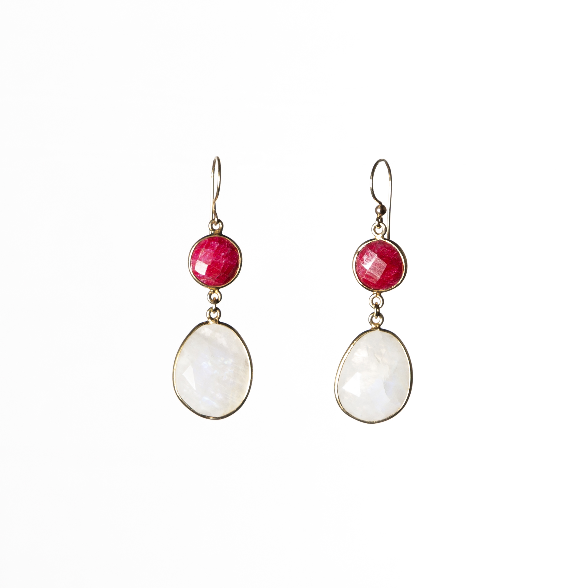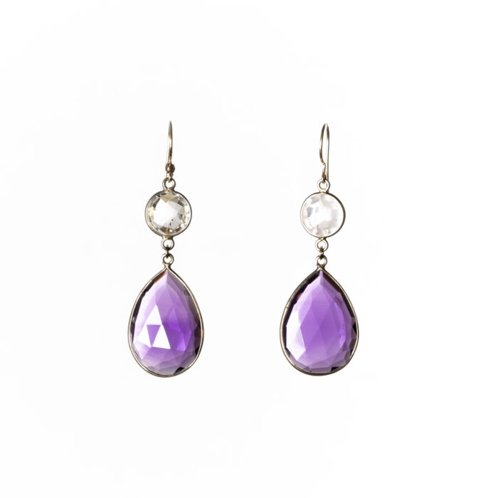 Pendientes colgantes realizados en oro de18 quilates con cuarzos naturales que aportan movimiento. Elaborados a mano, con metales nobles y piedras seleccionadas.